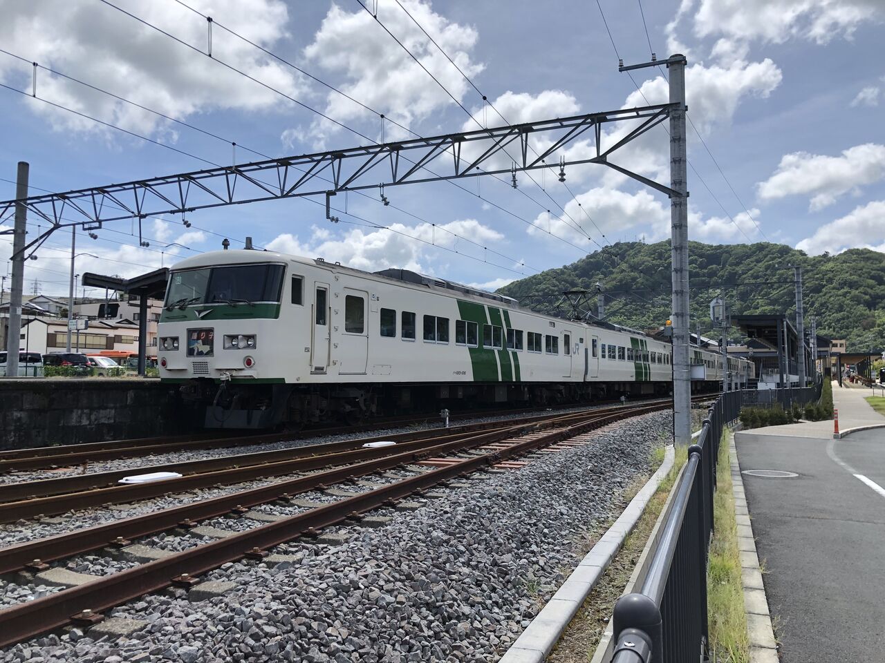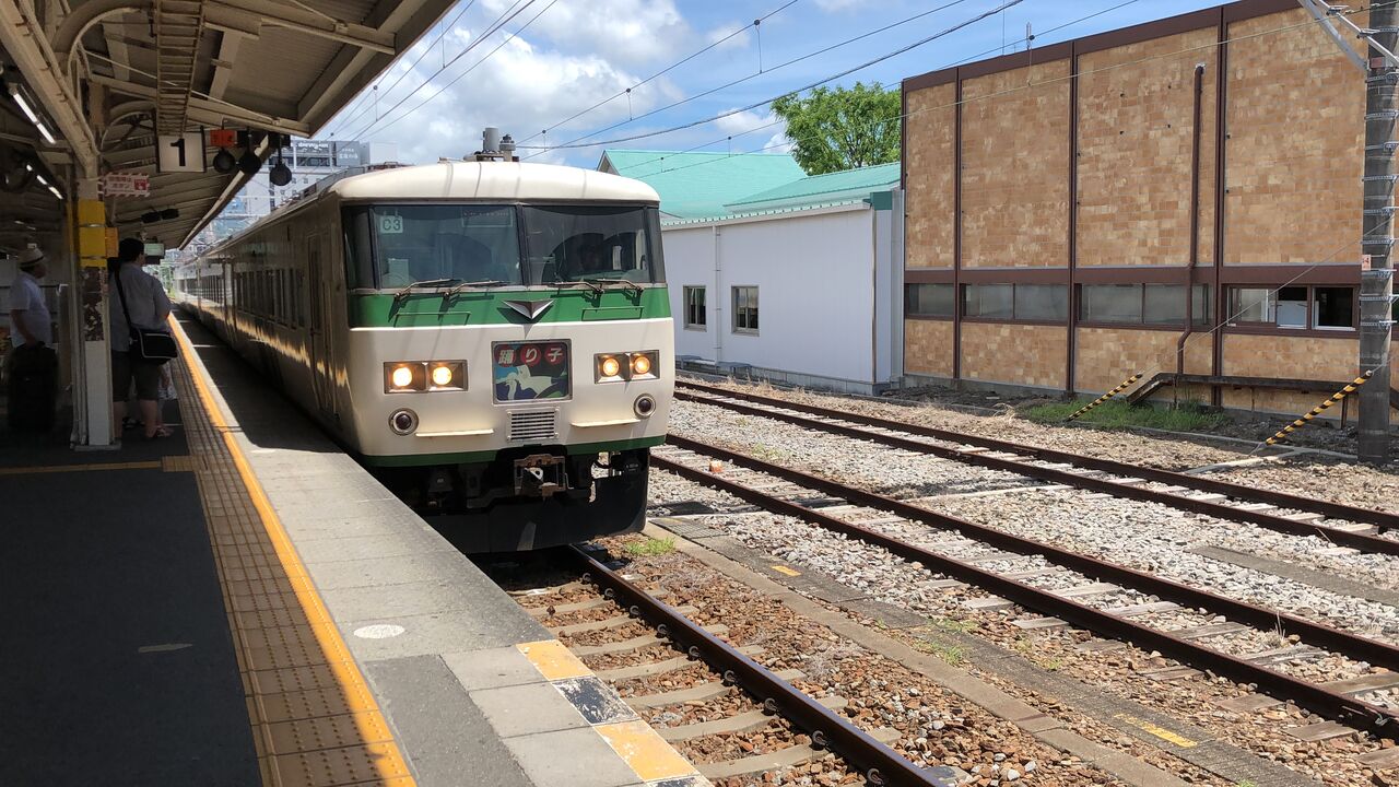 使われている車両は湘南ライナーなどでもおなじみ国鉄型特急185系です。