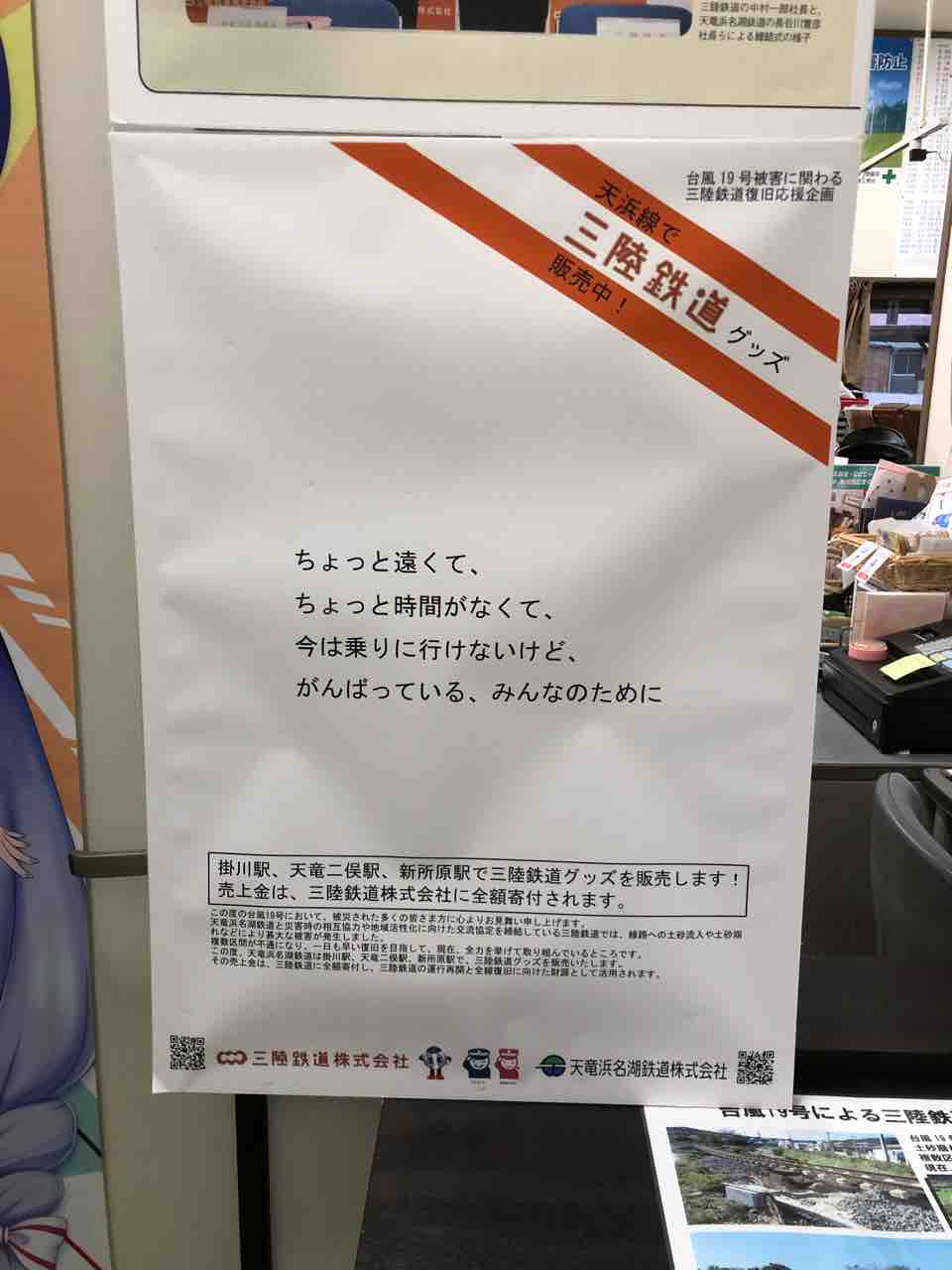 東北は遠くて行けない!けど「三陸鉄道のグッズを買いたい!」「寄付したい!」という人は天竜二俣駅へGO! (※少しですがネットのさんてつ屋 三鉄オンラインショップでも買えます。https://sanrikutetsudou.shop-pro.jp/