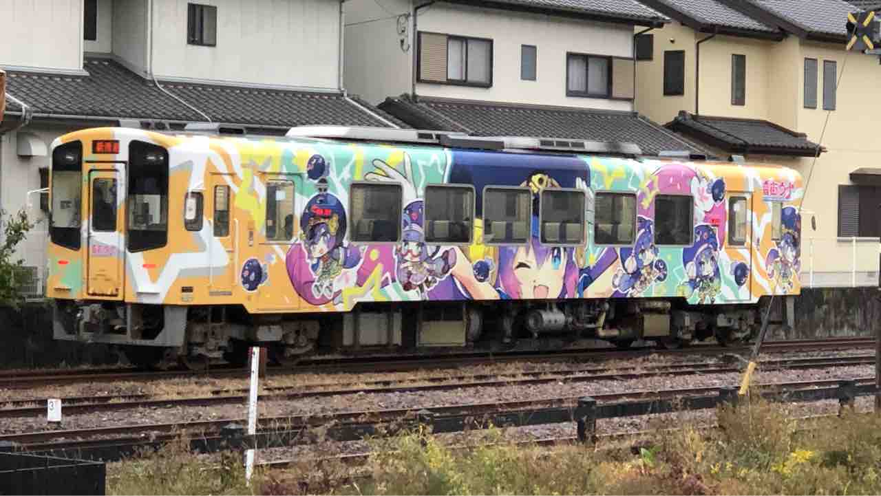 一番奥には「音街ウナ」×「天竜浜名湖鉄道」コラボレーションフルラッピング列車『うなぴっぴごー!』が止まっていました
