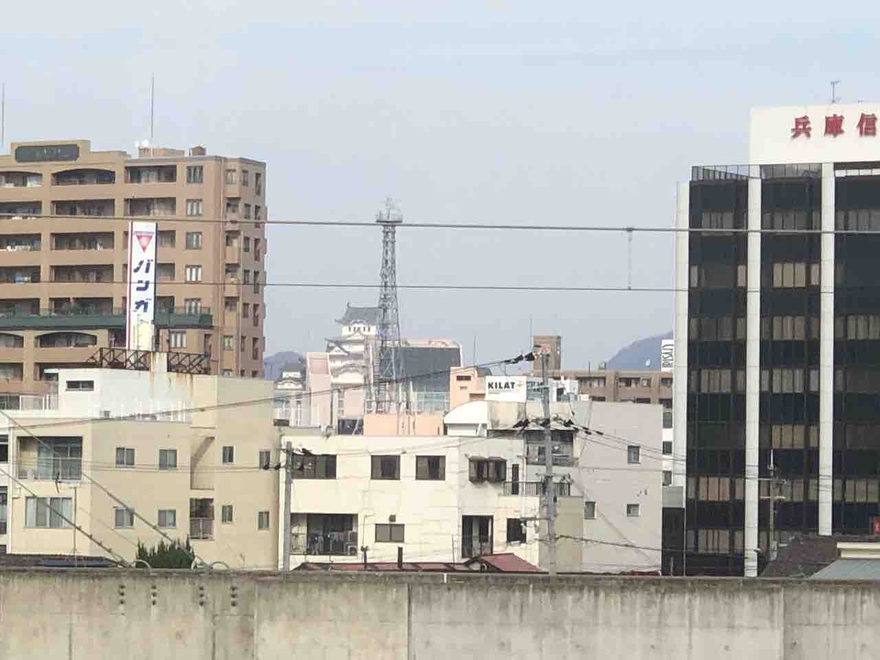 姫路駅手前で国宝姫路城が見えました。別名白鷺城 白く輝いています(・∀・)