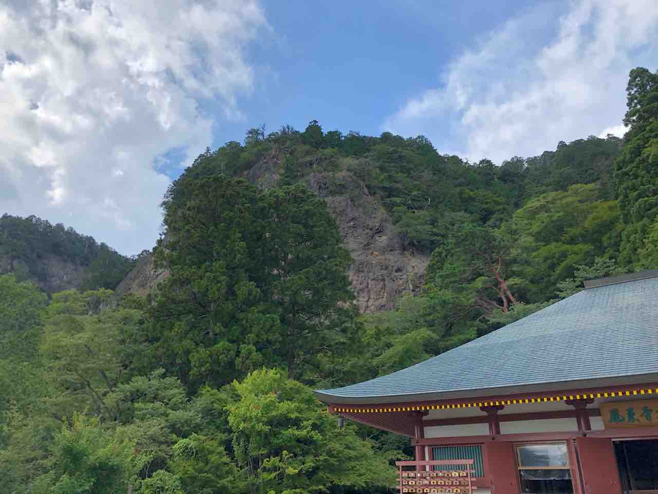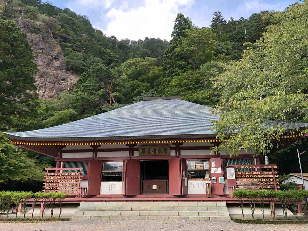 石段を下り、きた道と逆へ進むとすぐ鳳来寺の本堂が見えてきます。