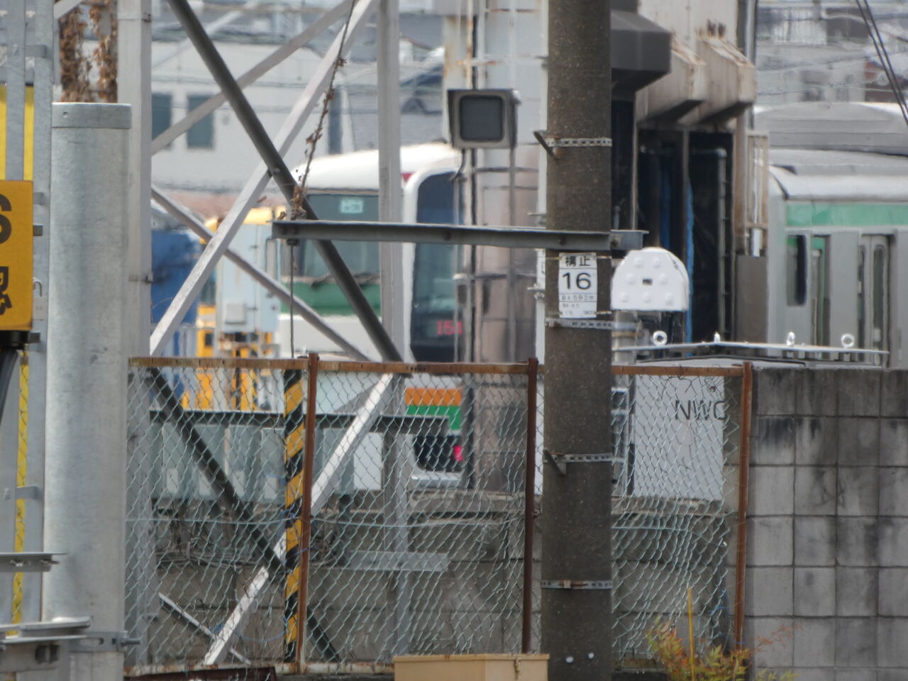 電柱と車両の奥に3編成目がいたのですが流石にほぼ見えません![]()