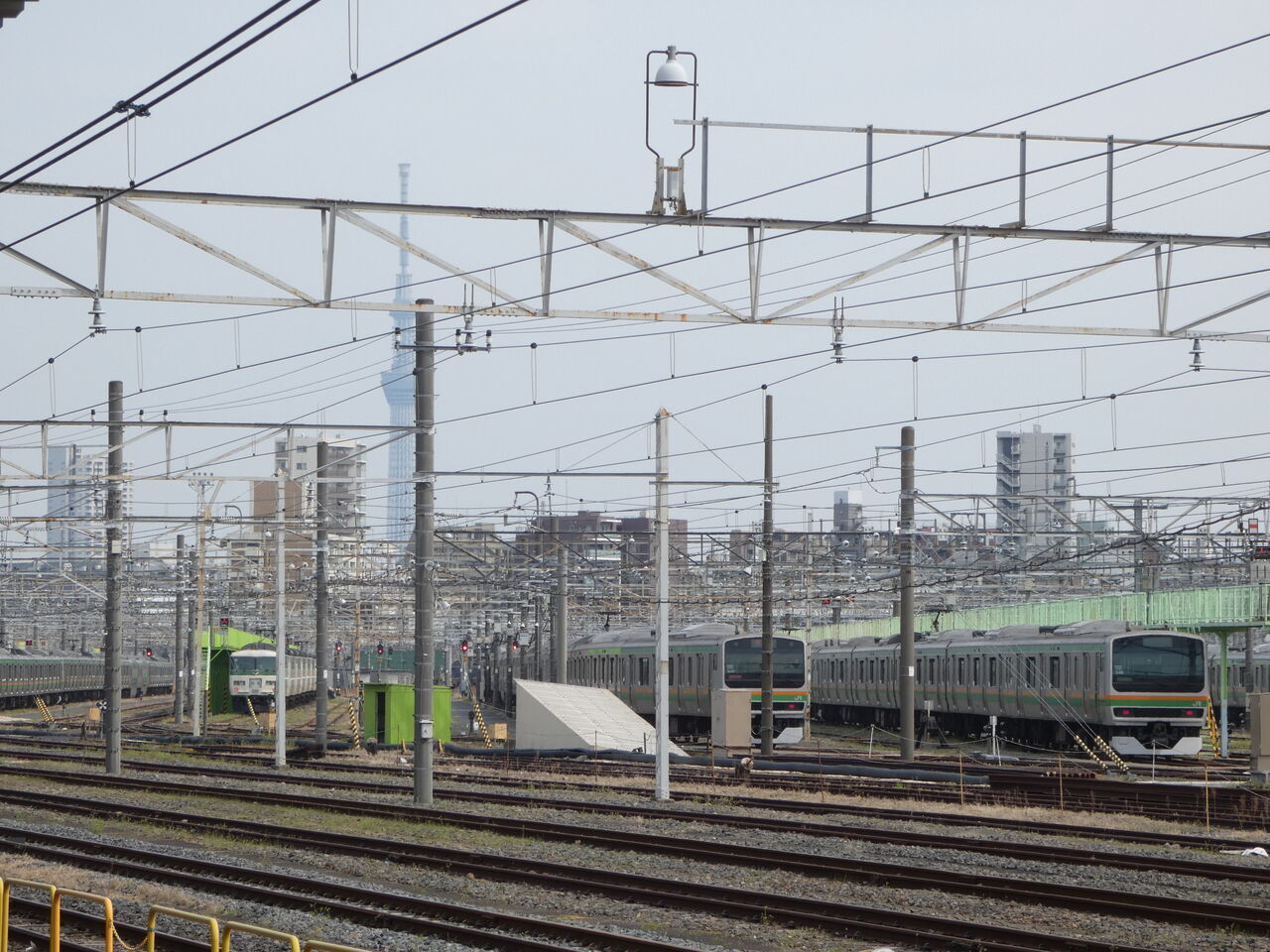 尾久駅から見た尾久車両センターです。ホーム上から見渡すことができます。